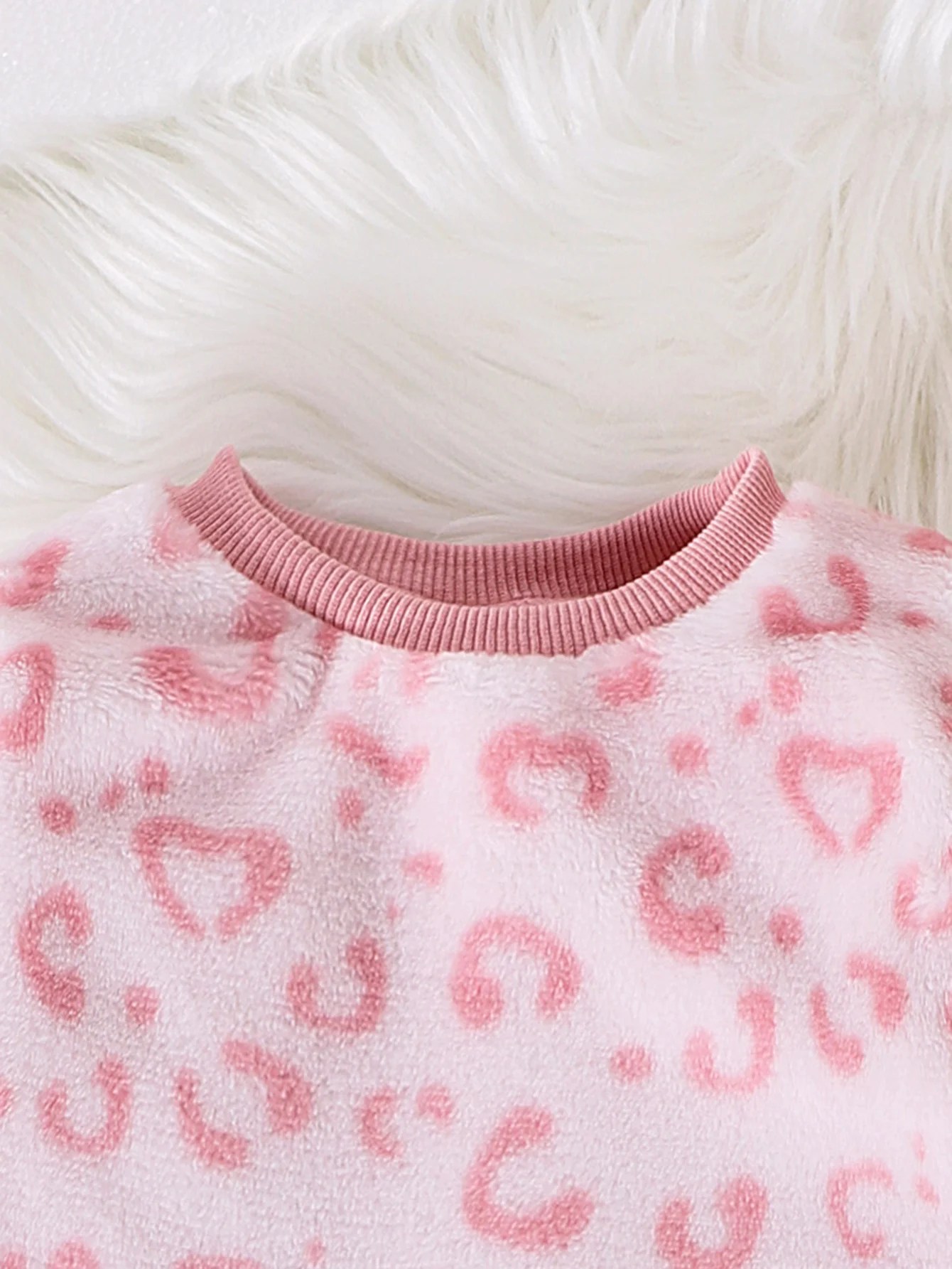 2PCS Winter New Style Girl Baby 1-3 Years Old Sweet And Lovely Pink Round-Collar Fur Sweater Set
