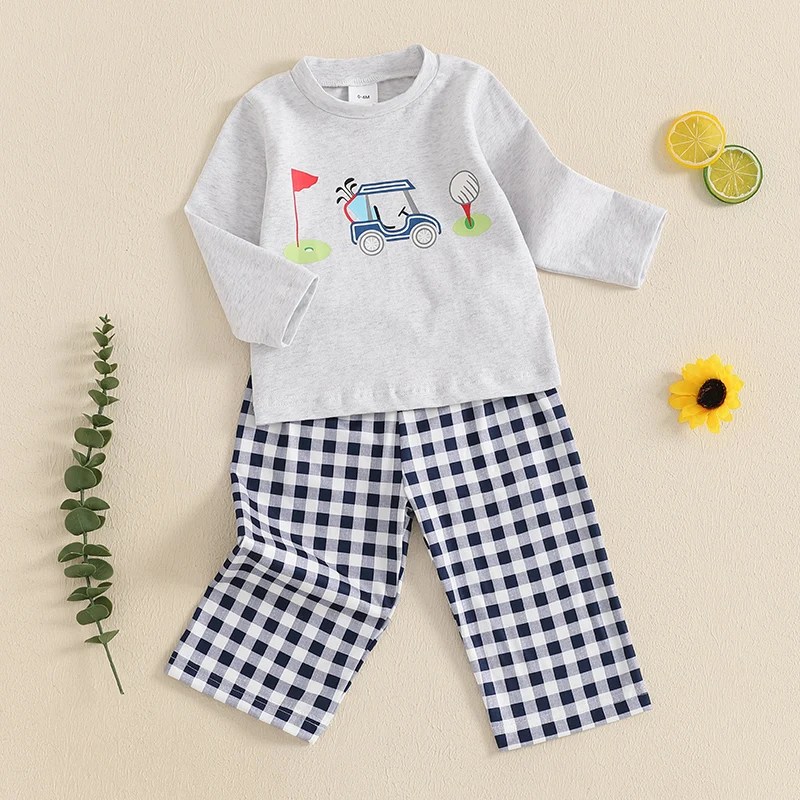 Adorable Baby Boys Girls Autumn Clothing Set with Cute Animal Print Tee and Checkered Trousers for a Stylish Look