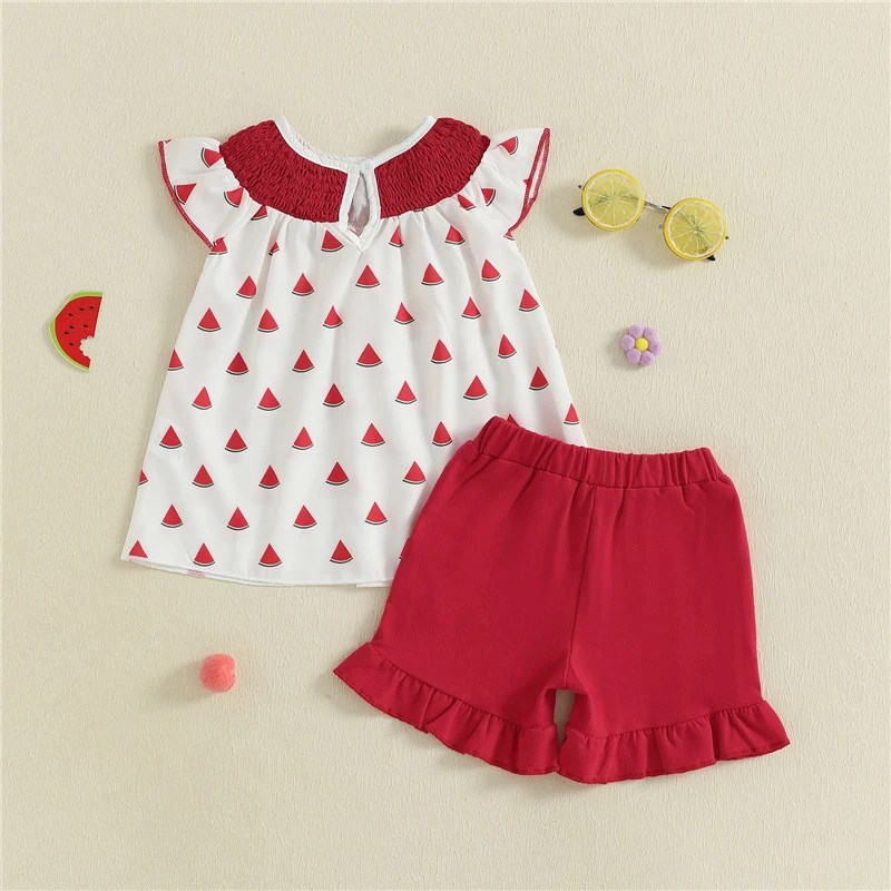 Baby Clothing Kids Girls Shorts Sets Sleeveless Crew Neck Watermelon Print Tank Top and Shorts Summer 2-piece Outfit