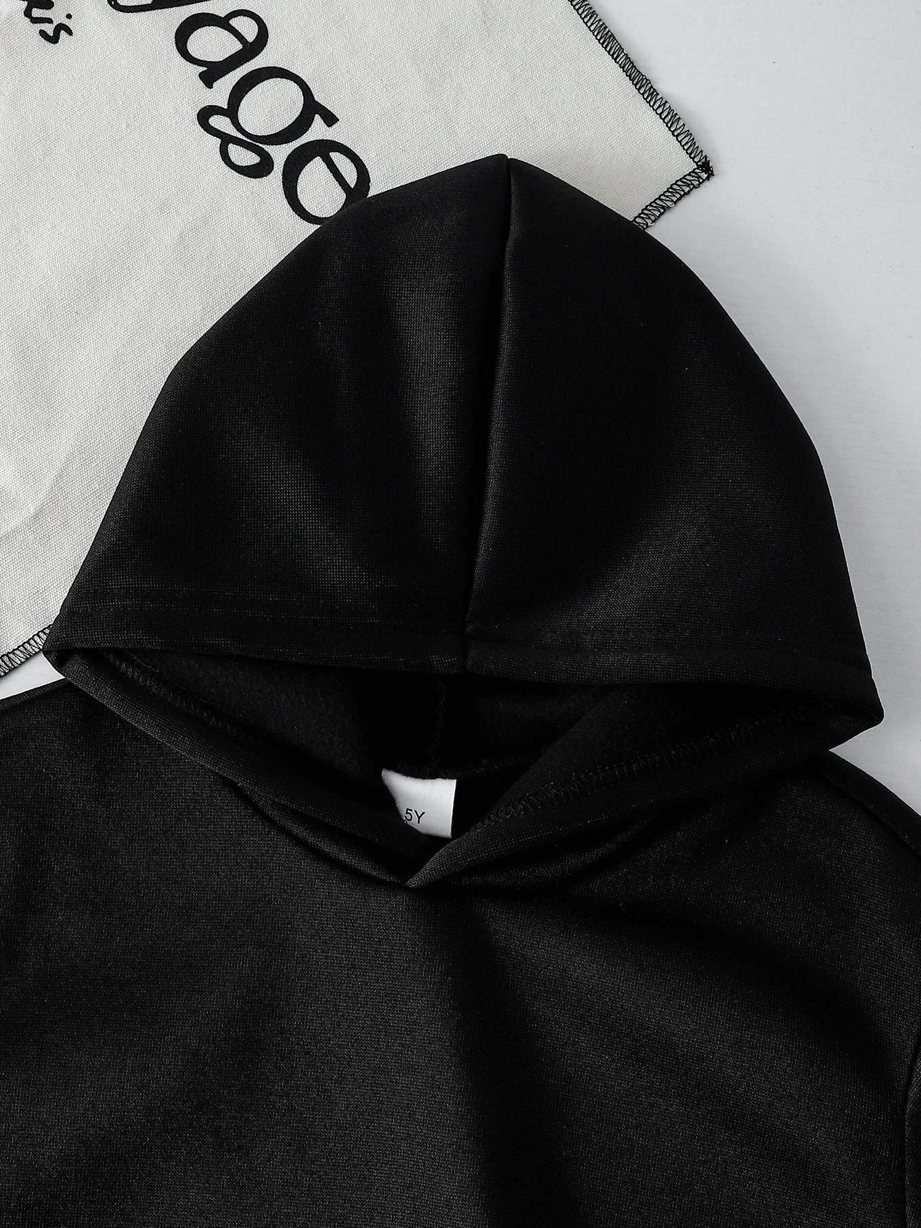 Boys Fashion Autumn and Winter Letter LOS ANGELES Trendy Printed Velvet Sweatshirt Hooded Pullover Casual Thickened Trousers Set