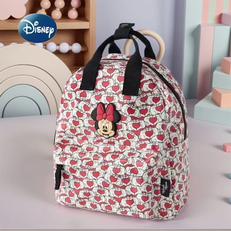 Disney 2025 New Cute Minnie Children’s Backpack Girls Cartoon Print Large Capacity Book Storage Kindergarten Baby School Bag
