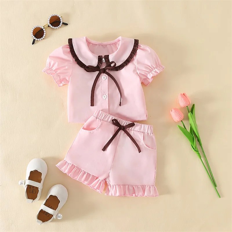 0-3 Year-Old Girl’s Summer Sweet And Cute Pink Top = Shorts Set
