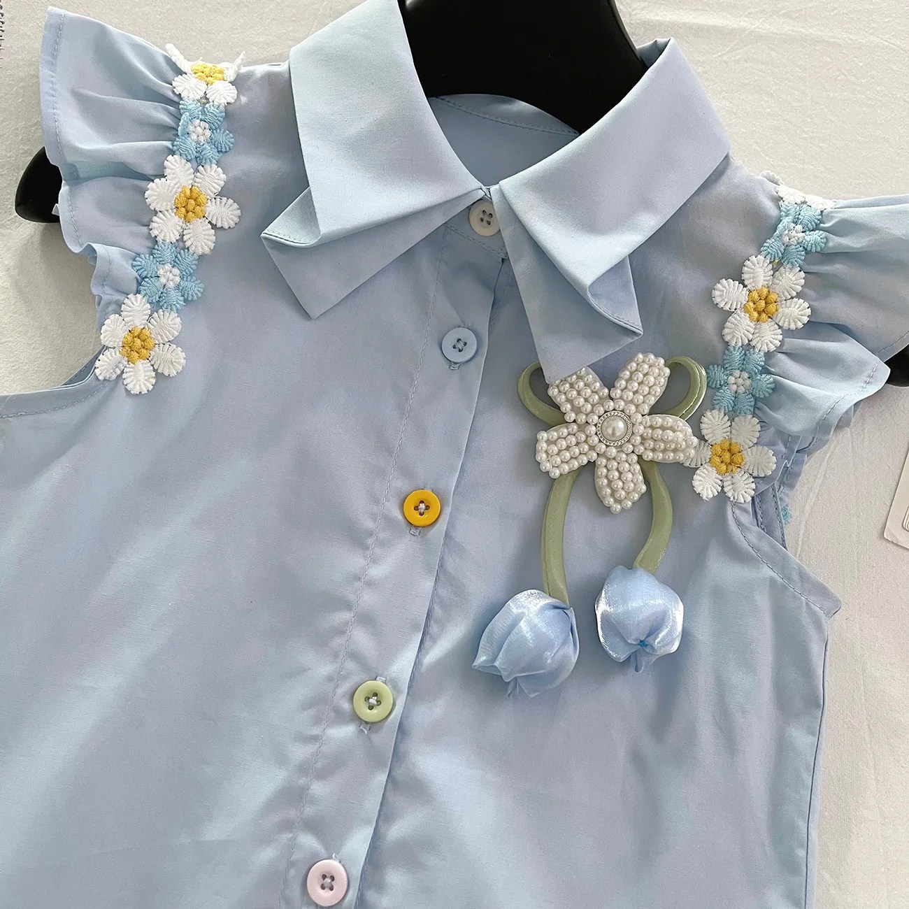 2PCS Summer New Style Girl Baby 1-3 Years Old Cute Sweet Wool Flower Halter Top + Shorts Set