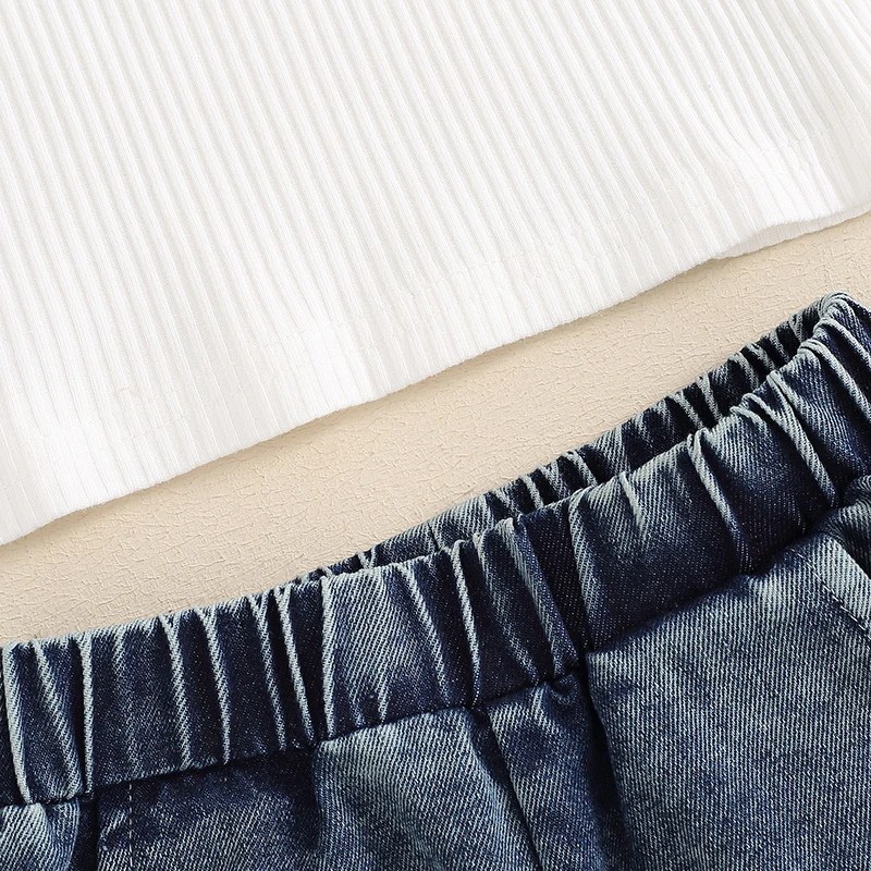 0-3 Year Old Girl Sweet And Cute Summer Style Red Collar Rice White Vest Denim Shorts Set