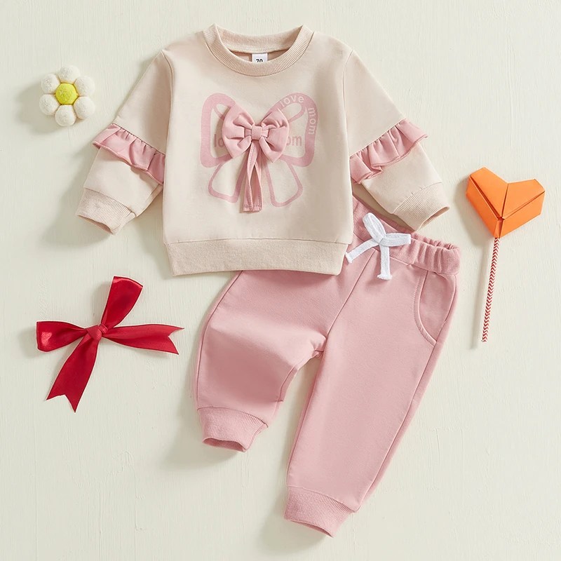 Pudcoco Baby Girls 2-piece Outfit, Long Sleeve Crew Neck Bow Sweatshirt with Elastic Waist Sweatpants Fall Clothes 0-3T