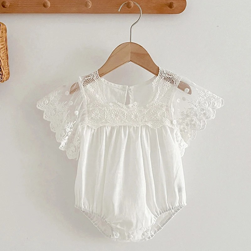 Summer Toddler Baby Girls Rompers Princess Bodysuit Solid Color Girls Jumpsuits Girls Lace Rompers Puff Sleeve Toddler Clothing