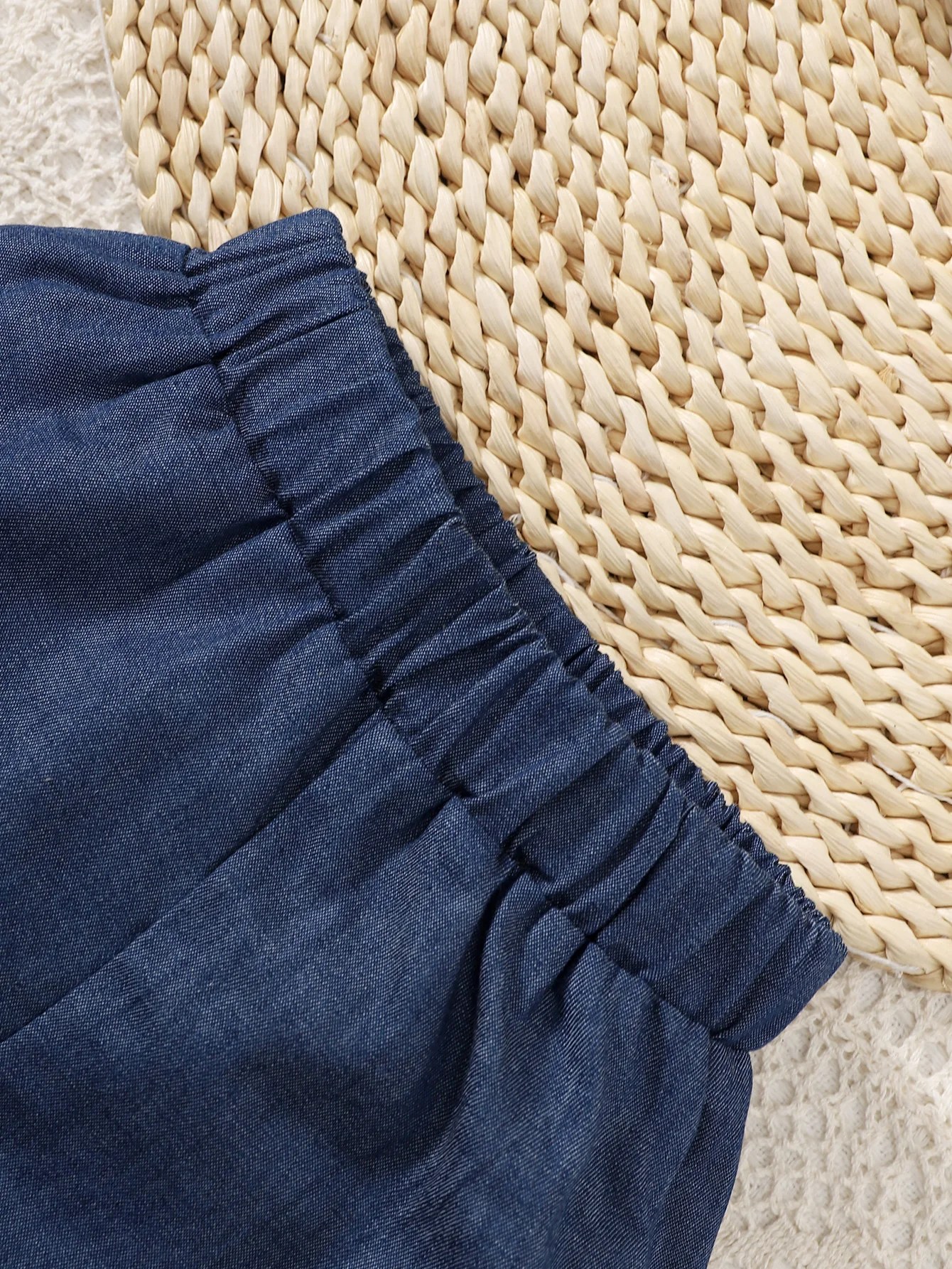 Toddler Baby girl Bow Suspender Print Top Blue Shorts 2pcs/set 0-3 Year old Baby Girl Summer Set Vacation Casual Wear